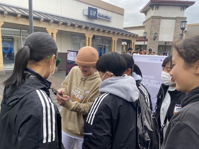 朝は少しゆっくり集合して、みんなでLIVERMORE OUTLETに向かいました。昨日と今日の二日間限定でチームの仲間になってくれているミラとケイトもここから合流。昼食を含めて2時間弱の自由散策です。USA CAMPで毎回訪れているこのアウトレット、来るたびに新しい建物が増設されて規模が拡大しているとのこと。