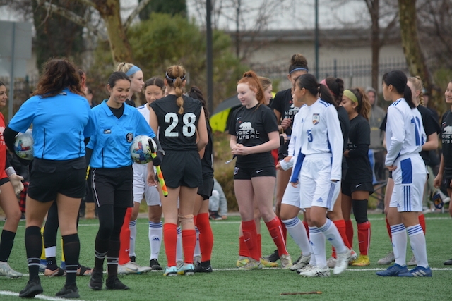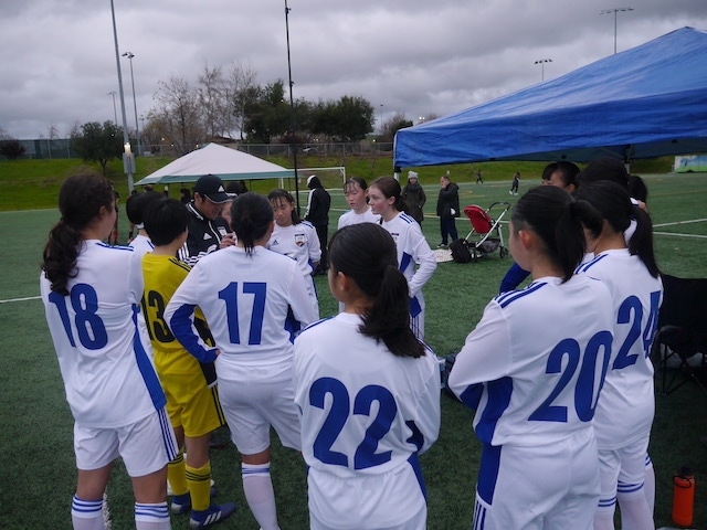 相手は、NorCal Futbal。昨日とは少し異なり、体格やフィットネスの優位を生かして縦に速いサッカーを指向する、これぞアメリカというチーム。アカデミー堺は、昨日と同じようにストロングである前線からの組織的なプレッシングで高い位置でボールを奪うことを確認して試合に臨みました。
