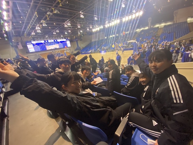 日本の大学スポーツのイメージとは大きく異なり、チアリーダーが会場を盛り上げ、観客の熱気もまさにエンターテイメント。施設の規模、会場の熱気に試合の疲れも吹っ飛び、楽しい時間になりました!