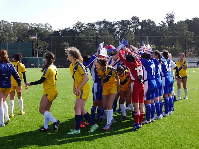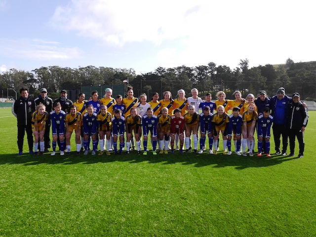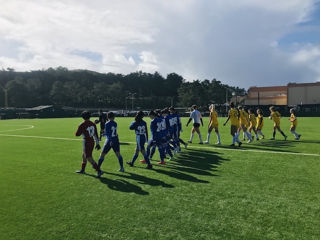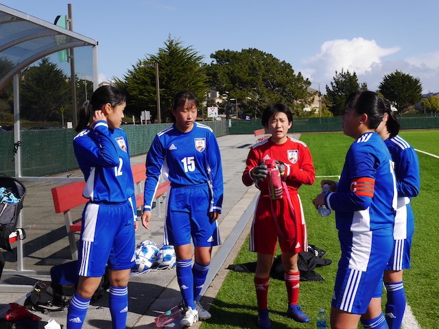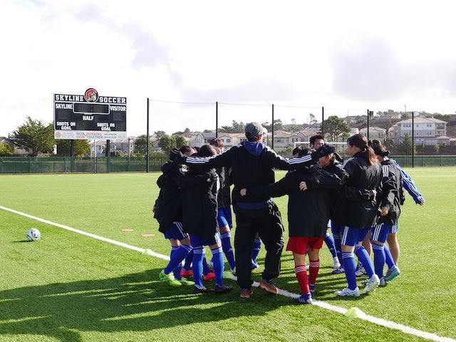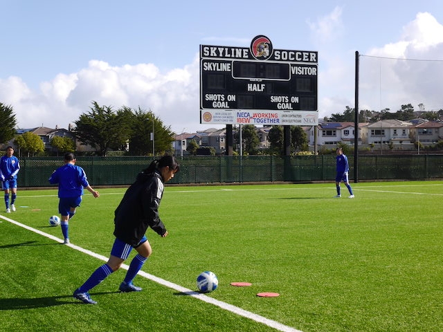 3試合の中で一番良いグラウンドだよと聞いていた通り、Skyline Collegeのサッカー場は綺麗な人工芝で電光掲示板や観客席もありました。PDP(Player Development Program)は、毎年対戦してもらっているサンフランシスコ北部の選抜チームで、初戦と2戦目の対戦チームからも何人か選抜されています。強豪を相手に、10期生はどんな戦いができるでしょうか。