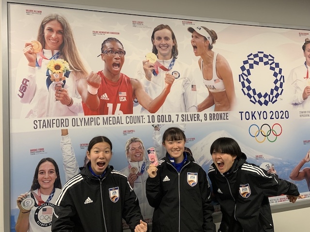 スタンフォード大学は、どのスポーツも強いうえに学力面でも優秀であると聞いていたので、大学の見学を楽しみにしていました。到着すると想像以上に広くて綺麗で感動しました。ホーム・オブ・チャンピオンズという建物に入ると、これまでのスタンフォード大学のスポーつの名選手たちの銅像や写真、獲得したトロフィーやメダルなどがたくさん飾ってありました。私もこの大学に入ってみたいと思いました。ホームステイ先では昨日よりもたくさんの会話をしたりして盛り上がりました。アメリカは日本との違いがたくさんあるけれど、一番驚いたのは私たちの1歳年上のミラという娘さんが車を運転してくれたことです。とても驚きましたが、かっこいいと思いました。