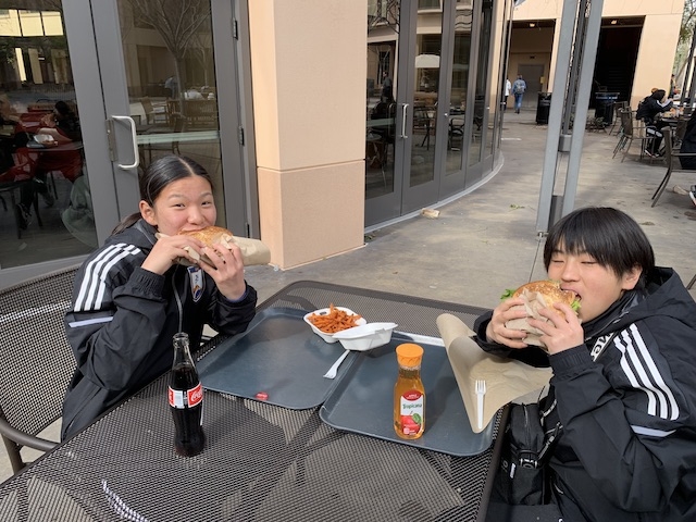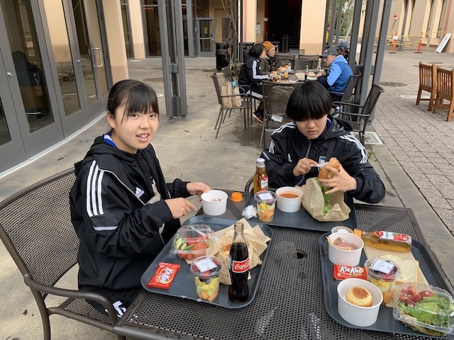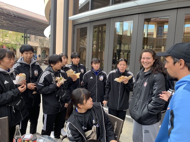 ランチのタイミングでスタンフォード大学の女子サッカー部に所属するアンドレアさんがわざわざ会いに来てくれました。