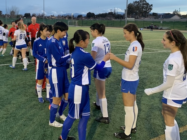 アメリカに来て初めて試合をしました。初めての試合で最初はすごく緊張していたけど、試合をやっていくうちに緊張が解けていつも通りのプレーをすることが出来ました。試合では助っ人としてMIRIという1つ年上の選手が私たちのチームでプレーし、MIRIは日本語が話せたのですごくコミュニケーションが取りやすかったです。相手のペースには乗らないで自分たちのペースを保つことが出来て良かったです。前半はすごく自分達のペースで攻めることが出来ていたけれど、後半になると攻められる時間も増えましたが無失点で守り切ることができて良かったです。スコアは7−0という良い結果で終われたので、明日からの試合でも自分たちのプレーができるよういっぱいチャレンジしていきたいです。