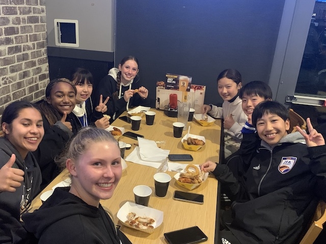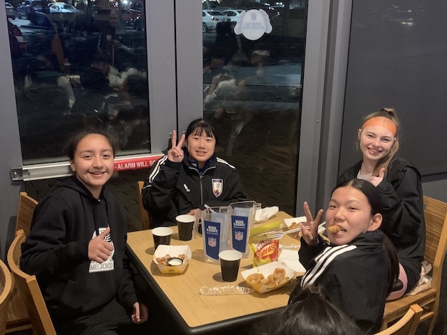 楽しい時間はあっという間に過ぎていきました。アカデミー堺は明日も試合です。しかも明日の試合会場はサクラメント。出発の時間も早く片道3時間の移動です。今日の疲労をどこまで回復できるかが鍵となりそうです。ホストファミリーがレストランまで迎えにきてくれて選手たちはそれぞれの家へ帰ってきました。しっかりと睡眠をとって疲労回復に努めてください。