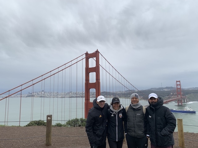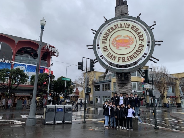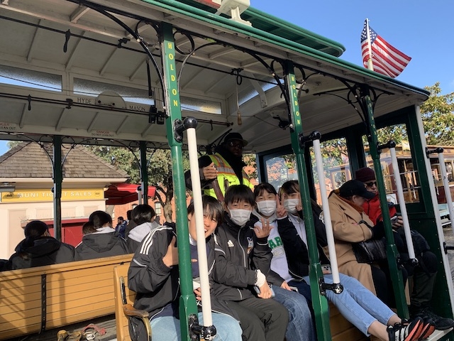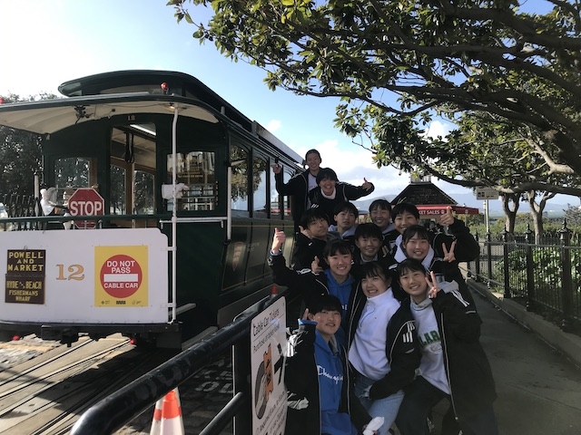 今日は私たちがとても楽しみにしていたサンフランシスコ観光でした。私がサンフランシスコに来て1番見てみたかったゴールデンゲートブリッジは、車での移動中は雨が降っていたのに私たちが見る時間には雨が止み、観光客にはあまり知られていないというゴールデンゲートブリッジがとても綺麗に見える絶景スポットに連れて行ってもらいました。曇ってはいるもののとても迫力がありました。その後は、お土産を買ったり自由な時間を楽しんだあとは、日本でいう路面電車に乗り、サンフランシスコの街並みを観光しました。サンフランシスコはとても坂道が多いので、ジェットコースターに乗っているような感覚になりました。降りる際には、乗車員の方にベルを鳴らさせてもらったりと、日本ではできない経験がたくさんできました。サンフランシスコは、どこを見ても写真を撮りたくなるようなおしゃれな街で、とても楽しかったです。