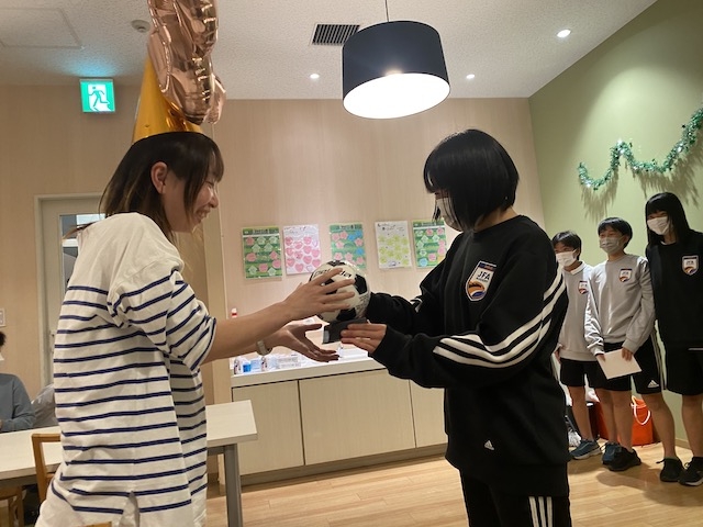 一人ひとりメッセージを書いたサッカーボールを送りました。