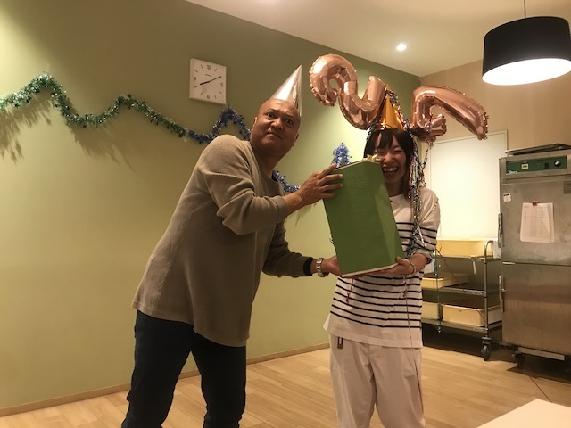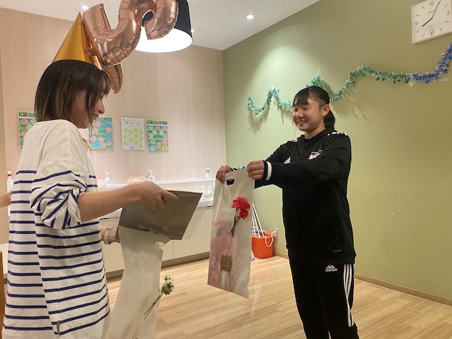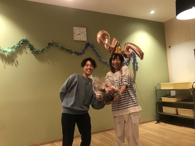 最後に、スタッフからもお花とプレゼントを送りました。