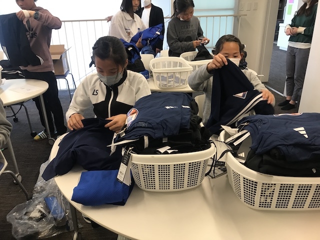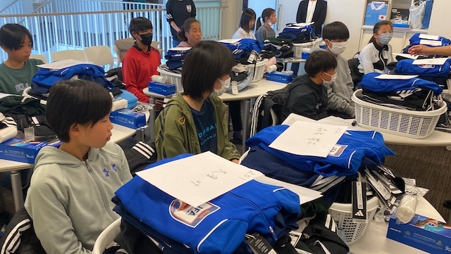 昼食後は、毎日トレーニングで使うウエアやスパイクが配布され、写真撮影と続きます。