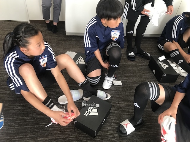 帰ってきて、初めてのトレーニング。昨日、新品のアディダスのスパイクを支給されてから、早くサッカーしたい!と待ち侘びていた12期生。