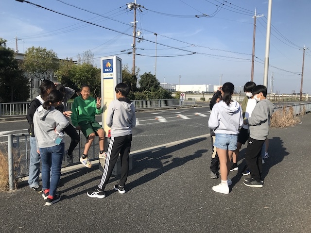 朝ご飯の後は、登校シミュレーションです。南海バスに乗って、月州中学校まで向かいます。