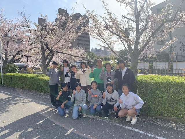 学校前に並ぶ満開の桜の木が迎えてくれました。