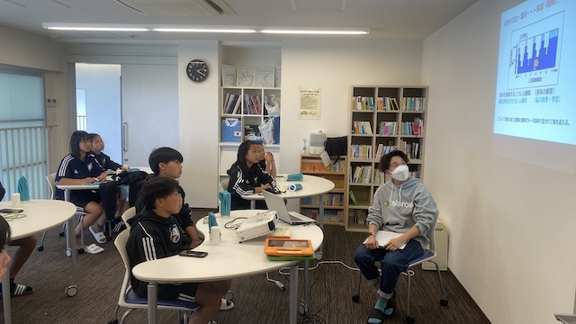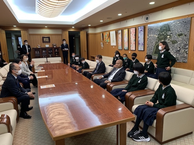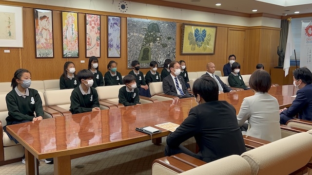 永藤市長と松本スポーツ局長がお忙しい中アカデミー生との時間を作ってくださいました。自己紹介を一人ずつ行い、その後みんなの質問に市長が丁寧に答えてくださいます。