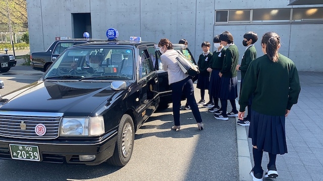午後は堺市役所へ表敬訪問。タクシーに乗って移動します。