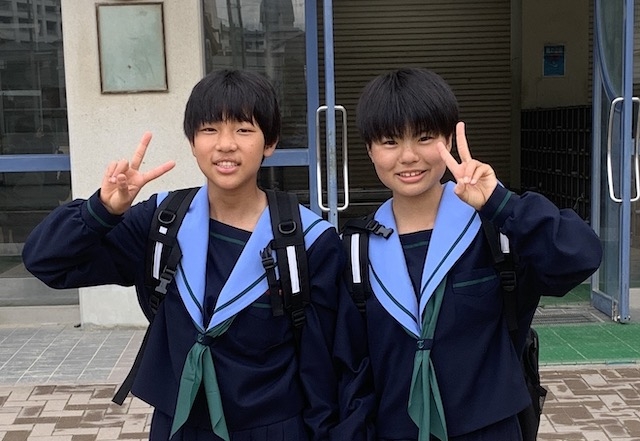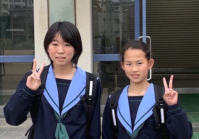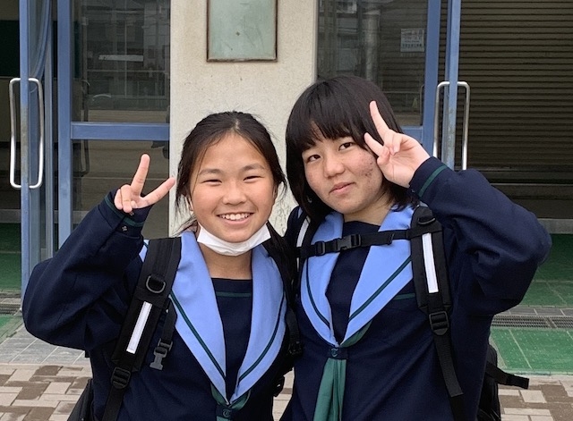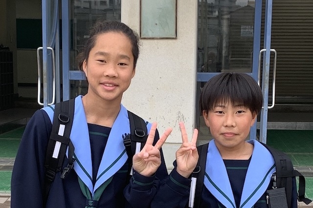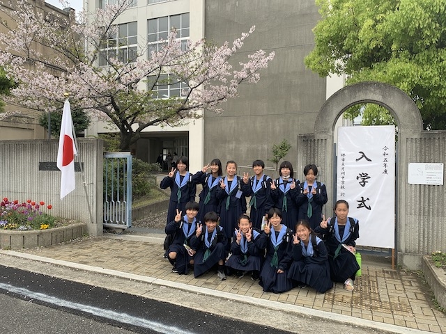翌日の6日には月州中学校の入学式が行われました。NEW月州バックを背負って、寮からみんなで登校です。