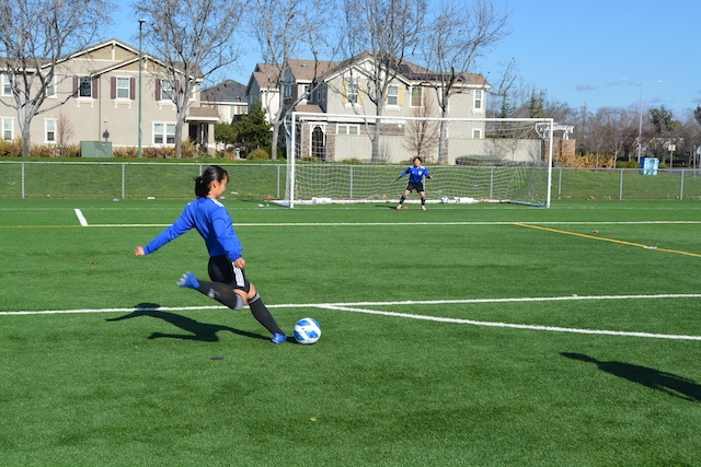 PMの試合に向けてFKの練習をする高橋。