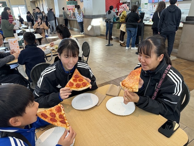 トレーニングの後はアウトレットモールへ移動し、まずはランチです。今日の一番人気はピザのようでした。