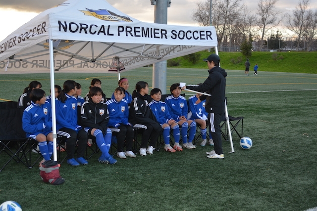 武末コーチの指示を聞く選手たち。
