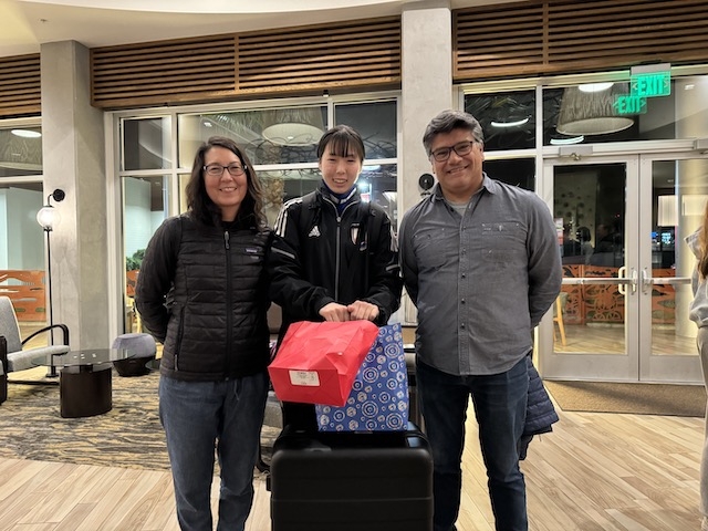 ホストファミリーに関しての事前情報はあるものの、いざ会うとなると緊張は高まります。でも迎えにきてくれたファミリーの笑顔に、選手たちは安堵の表情を見せていました。