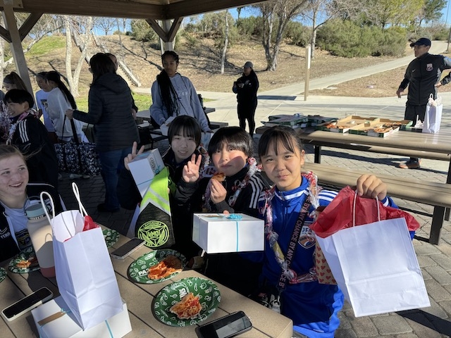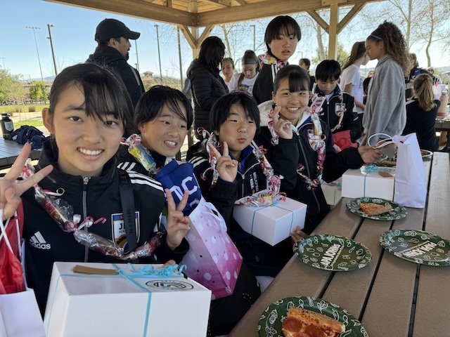 こちらに来て2回目の試合がありました。スプリント力は今日の対戦相手の方が断然上でした。その中でもチャレンジできたことはたくさんありました。アメリカに来て良かったと思うのはそこだと思います。フィジカルやスピード、言語も違う相手と戦って挑戦するからこそ成長できると思います。ですが、結果は負けてしまいました。負けてしまったけどチームとしては初得点がありました。次の試合では自分が得点を決める意識でやっていきたいと思います。試合が終わった後はPDPの選手とピザを食べながらいっぱいおしゃべりをしました。帰る前にはお土産として服やお菓子をもらい、とても良い思い出になりました。