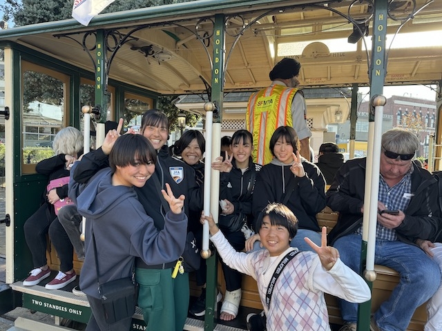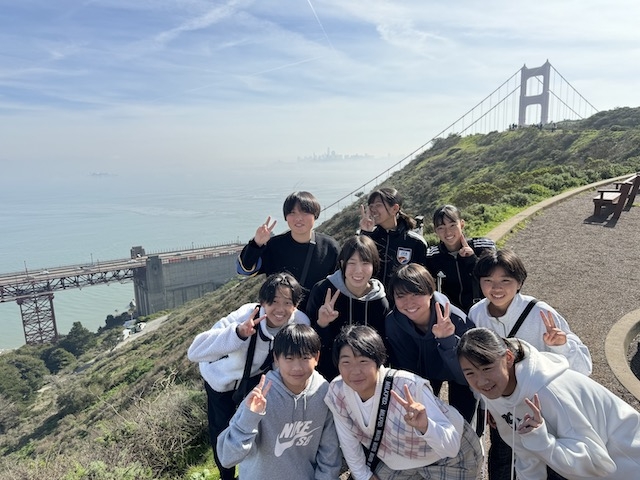 USA CAMPでの活動の6日目にはサンフランシスコ観光がありました。ゴールデンゲートブリッジやNBAのウォーリアーズのアリーナ、メジャーリーグのジャイアンツのスタジアムに行ったり、フィッシャーマンズワーフで買い物したりして楽しみました。朝は雲が多く、ゴールデンゲートブリッジがちゃんと見られるか不安がありましたが、到着して間も無く徐々に雲がなくなっていき、きれいに見ることが出来ました。ここを訪れる観光客が多く、サンフランシスコの有名な観光地であることを実感しました。その後のフリータイムでは積極的に英語で話し、分からないことを分からないままにしないということを心がけました。アメリカに到着した時と比べたら、英語にも少し慣れてきてお店での注文もうまくできるようになったと思います。サンフランシスコの観光はとても楽しく、充実した時間を過ごすことが出来ました。自分たちが楽しめるように計画を立ててくれたスタッフや車で色々なところへ案内してくれたヨバンさんやケンさんにとても感謝しています。この遠征で学んだ英会話、アメリカでのサッカーを忘れずしっかりと日本に持ち帰って、この先で活かせるように頑張ります。