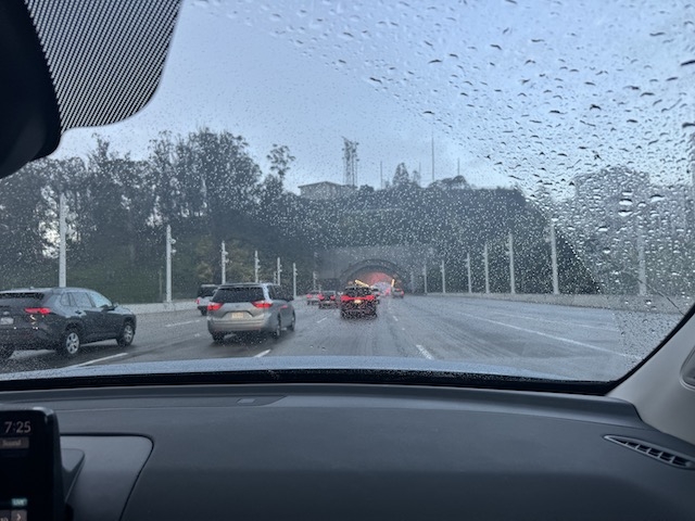 空港に向かう車中。帰国を惜しむ涙雨?