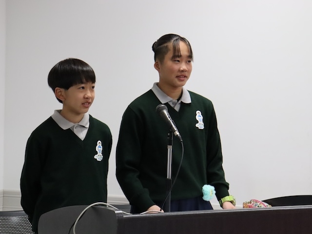 司会を務めた2年の蜷川と1年の楠本。とてもしっかりとした司会で式全体を引き締めてくれました。