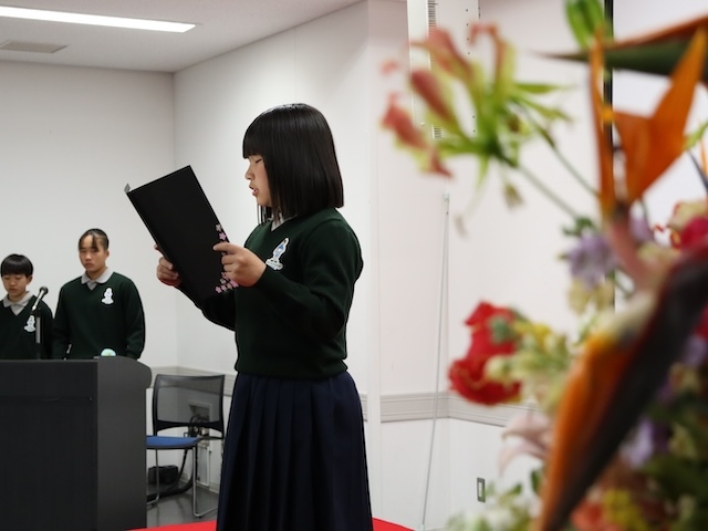 いよいよクライマックス。3年生それぞれが決意表明を行い、最後に3年生を代表して高橋が答辞を読み上げ、3年間の感謝の言葉を述べました。11期生らしさ溢れる内容でした。