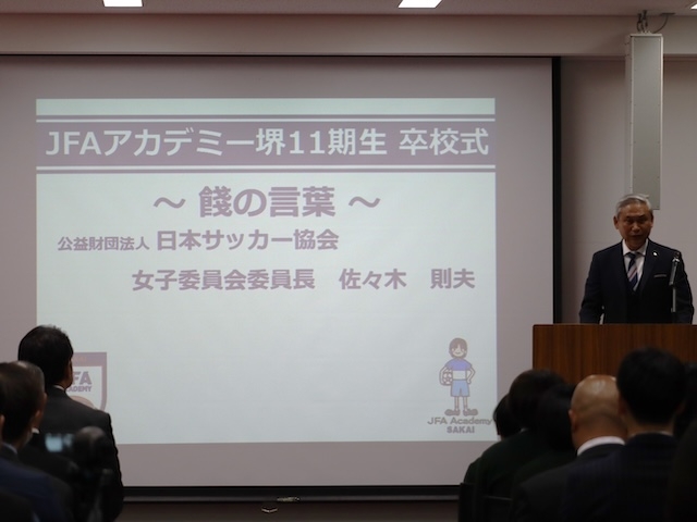そして公益財団法人日本サッカー協会女子委員会委員長の佐々木則夫様より餞(はなむけ)の言葉をいただきました。