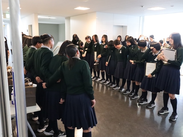 会場外では2年生が3年生に歌のプレゼントをしてくれました。感謝の気持ちを込めて。3年生は涙が止まりません。