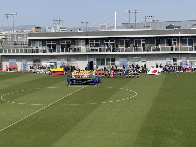4月8日、JFAアカデミーの活動拠点であるJ-GREEN堺のメインピッチにおいて、なでしこジャパンとコロンビア女子代表のトレーニングマッチが行われました。2日目の6日にヨドコウ桜スタジアムで国際親善試合として同一カードの試合が開催され、1-1の引き分けという結果でした。それを受けてのトレーニングマッチでしたが、一般の観客も入れての試合となりました。