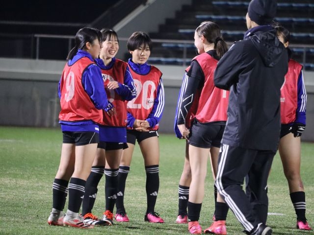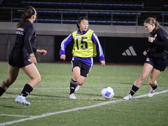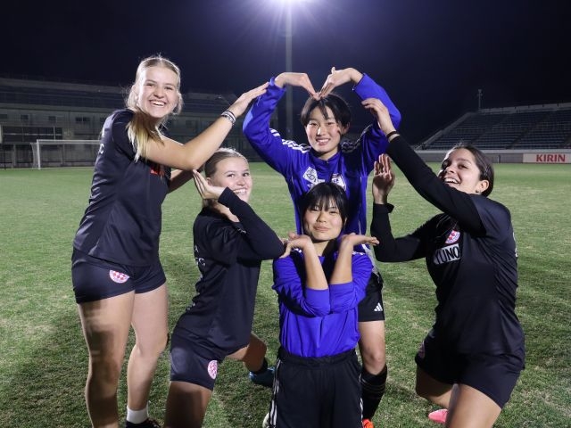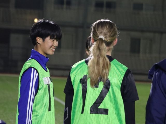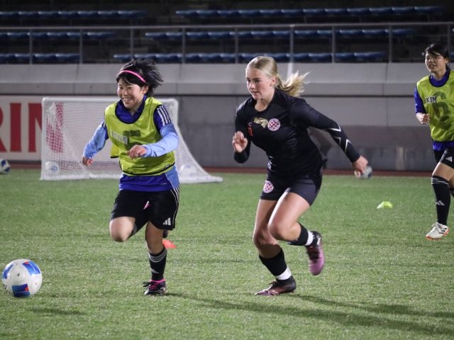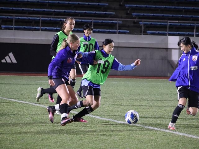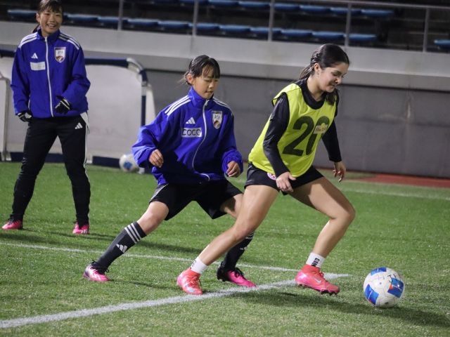 先日のオーストラリアの指導者研修編に続いて、今度は同じくオーストラリアの女子チームとの合同トレーニングの様子です。今回合同トレーニングを行ったのは1月17日18日に行われるJ-GREEN SAKAI Lady's Festival U-15に出場するために来日したCanberra Croatia Deakin EFAです。オーストラリアの首都キャンベラにあるクロアチア系の選手を中心としたクラブチームです。ほとんどが日本の中学3年生と同じ2010年生まれで、2009年・2008年生まれの選手も数名含まれていました。真夏のキャンベラから真冬の日本に到着した翌日だったため、コンディションが心配されまししたが、オーストラリアの選手たちは元気いっぱいでした。覚えたての日本語の単語を使って積極的にコミュニケーションを取ろうとする姿が印象的でした。