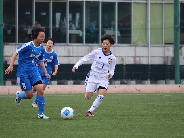 前日の勢いそのままにキックオフから相手陣内に攻め込み、終始主導権を握りましたが肝心のゴールが奪えない状況が続き前半は0-0で折り返しました。後半途中から入った藤山と田中の1年生ツートップが良いアクセントとなり更にゴールに迫ります。そしてその田中と藤山がゴールを奪い2-0で勝利しました。GK宮武は2試合連続でクリーンシート達成です。