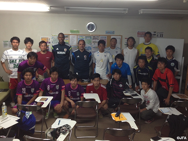 第1回目となる今回は、関東各県から、関東リーグや東日本リーグでプレーしている19名が参加し、講義と実技を行いました。