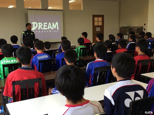 選手は初日のいい緊張感の中、トレセンコーチの話を理解しようと真剣に耳を傾け、ピッチ上でもレベルの高いことに挑戦してくれていました。