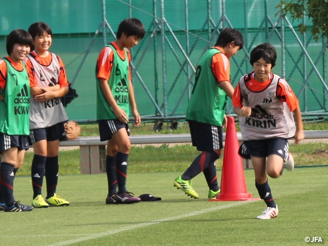 セレクションキャンプの参加者は公募で決定します。今年度は約70名の応募から、新たな選手の発掘を目的としてこれまでのスーパー少女プロジェクトや地域・都道府県トレセン等で把握している選手以外を対象に、小学5年生から中学3年生までの24人を選びました。普段GKやサッカーをやっていない選手もいますし、全員がJFAのこういう活動には初めての参加です。台風の影響が心配されましたが、日本中から予定通りに集合することができました。
