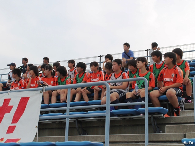 午後のトレーニングの後に、スタジアムで行われていたチャレンジリーグも観戦しました。セレッソ大阪堺レディースのGKはスーパー少女プロジェクトに参加している西中麻穂選手。自分もあんなプレーができるようになりたい!と熱い視線を送っていました。