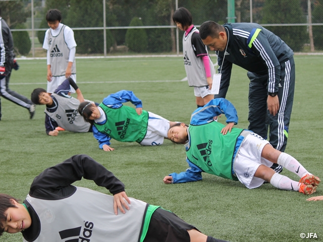 10年目の開催となる「ナショナルトレセン女子U-15」が12月12日から、東日本は鹿島ハイツスポーツプラザ(茨城県鹿嶋市)、西日本はJ-GREEN堺(大阪府堺市)にて始まりました。東日本には北海道・東北・関東・東海・アカデミー福島から82人、西日本には北信越・関西・中国・四国・九州・アカデミー福島から86人の選手が集合、4日間のプログラムに取り組みます。