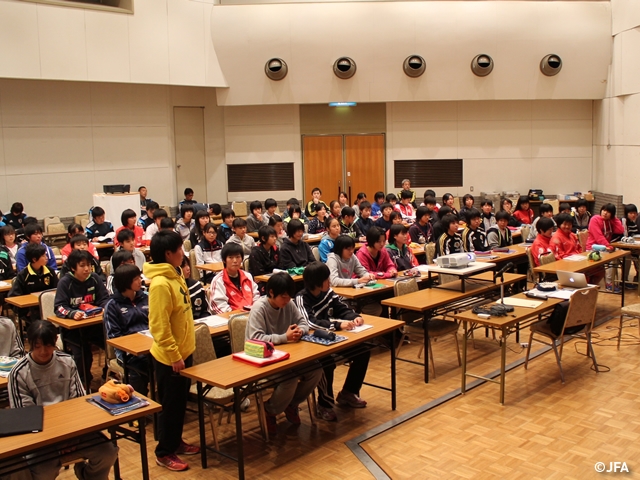 夜の全体ミーティングでは明日のトレーニングテーマの説明・確認がなされるとともに、最後に「もっとできるんじゃないか! ナショナルトレセンに来ただけで満足してないか! 自分をアピールしてほしい。自分のいいところをもっと見せてほしい。」という加藤賢二コーチ(ナショナルトレセン女子U-15チーフ)からの話があり、選手たちは活動の半分を終えて改めてナショナルトレセンに参加する意味・意義を確認したようでした。
