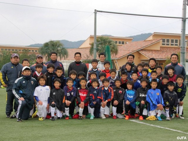 また、「JFA2005年宣言」実現のための施策(拠点整備)として、地域サッカー協会のフットボールセンターとしての機能を持ち、指導者養成、トレセン活動、キッズ、普及などの拠点として役割を担っています。今回は、熊本県トレセンU-13・熊本工業高校とのトレーニングマッチ、宮崎県U-11トレセン合宿をご紹介します。