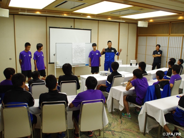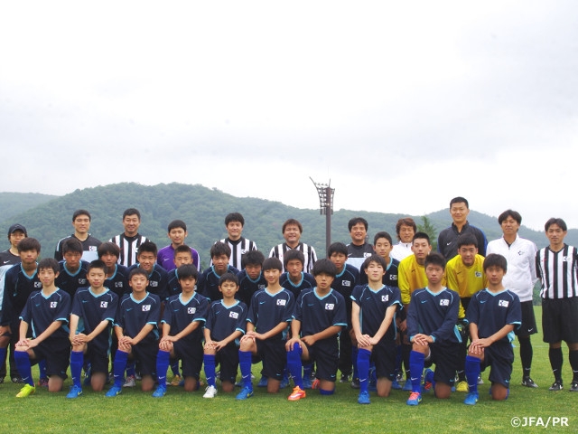 6月24日(水)~6月28日(日)の5日間、2015年第1回目の「エリートプログラムU-14」のトレーニングキャンプが岩手県花巻市にて開催されました。5月に開催されたナショナルトレセンU-14前期の参加選手を中心に、全9地域より推薦された22名(FP20名、GK2名)を招集してトレーニングと地元高校との練習試合を2試合行いました。またオフザピッチプログラムとして、世界遺産である中尊寺・毛越寺へ見学に行きました。