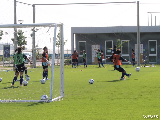 女子GKキャンプ第3回となる今回は、「セレクションキャンプ」として開催しました。日本サッカー協会公式Webサイト「JFA.jp」上で、なでしこジャパン(日本女子代表)のGKを目指す意欲ある参加者を募ったところ、全国から、そして海外から63名の応募があり、その中から選ばれた小学生12名、中学生15名の合計27名で実施しました。台風の影響で沖縄からの2選手は合流が遅れたものの、快晴となった大阪で元気にキャンプをスタート。