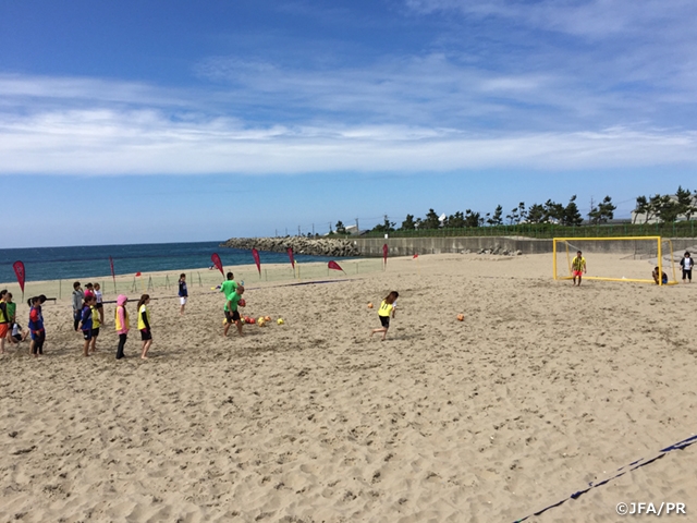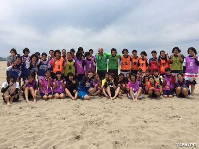 6月4日(土)と5日(日)の2日間、鳥取県鳥取市賀露町の西浜海岸にて、ビーチサッカー日本代表マルセロ・メンデス監督のビーチサッカークリニックが開催されました。今回のクリニックでは、女子選手を対象として総勢58人の選手が参加しました。