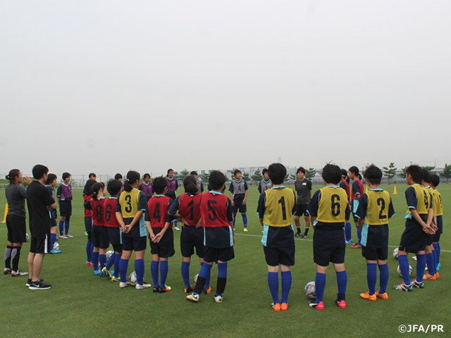 女子GKセレクションキャンプが7月8日(金)、大阪府のJ-GREEN堺で始まりました。このキャンプは、日本サッカー協会公式Webサイト「JFA.jp」上で、なでしこジャパン(日本女子代表)のGKを目指す意欲ある参加者を募り、全国から応募があった約70名の中から小学生16名、中学生12名の合計28名を選出し、実施しました。