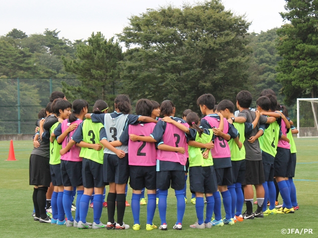 JFAエリートプログラム女子U-13の今年度第2回となる活動が、9月2日(金)、宮城県松島市でスタートしました。全国9地域から選ばれた23名の選手が緊張の面持ちで松島へ集まり、1回目の活動となった5月のキヤノンガールズキャンプを映像で振り返ったあと、最初のトレーニングに臨みました。