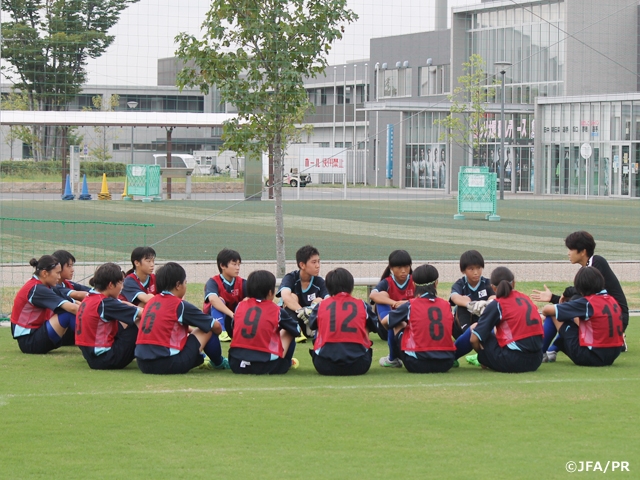 私はこのようなプログラムに参加したのは初めてでした。最初は不安もありましたが、新しいことにチャレンジできるという意味で本当に楽しみでした。全国から集まってくる仲間とともにサッカーができることで、自分も得ることがあると思っていました。だから自分にできないことがあっても、全力でやりきろうと決めていました。私がいちばん大切だと思ったことは、普段何気なくやっていたパスやトラップがどれだけ大切かということです。「メッセージを込めてパスを送る」という言葉を意識してプレーをすることができず、コーチに指摘されました。そこでもう一度どうしたら良いのかを自分で考えることができました。サッカーと生活はリンクするという言葉を聞き、私生活も見直しました。今日の試合を振り返ってみると、全体的に奪ったあとのボールを大切にできていなかったと思います。3、4本目からみんなで話し合い、1人1人が意識してパスを出すようになったと思います。この4日間のトレーニングで積み上げてきたことを試合で発揮でき、また、うまく行かなかったときは助けてくれる仲間がいたことで、同じチームの全員が協力しながらプレーできていたと思います。このキャンプで学んだことを、これからのサッカーに活かして自分のチームに戻っても継続してやっていきたいです。目標の世界一を目指すなでしこジャパンの一員になれるように努力することを忘れません。