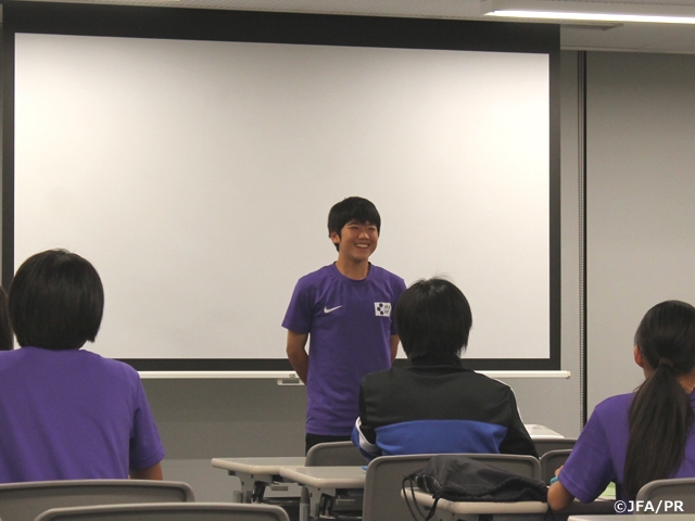 初日となった14日(金)、淀川監督からは、昨年5月に行われた第1回目で確認した約束「観て、感じて、行動する」「失敗を恐れずに積極的に行動する」があらためて選手たちに伝えられました。初参加の選手6名を含めた20名は、その後のトレーニングで積極的にコミュニケーションを取ります。夜のミーティングでは、宿題として出されていた「2分間の自己紹介スピーチ」を一人ずつ行いました。家族構成やサッカーを始めたきっかけ、自分に関するクイズなど趣向を凝らし、全員が仲間のことを理解するための時間となりました。15日(土)は韓国との第1戦を行います。