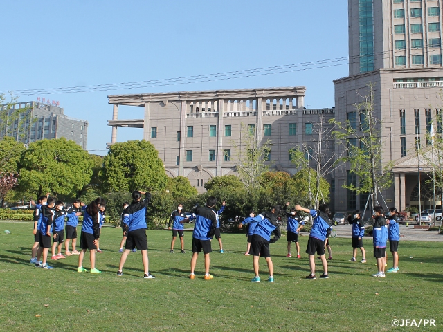 今回の中国遠征は20名の選手を招集しました。エリートの約束である「観て・感じて・行動する」「失敗を恐れずに積極的に行動(プレー)する」を確認し、選手には「特別な場所(海外)だからこそ何事にもチャレンジしよう!そして進化しよう!」そのために、「アジアのレベルを体感し自分(達)の現在のレベル、いかなければいけないレベルを確認しよう」ということ、「日本を代表してきていることの自覚・責任、立ち振る舞いといったことにもこだわろう」ということを共有しました。サッカーのテーマである「サッカー理解の確認・積み上げ」「試合で使えるテクニックの獲得・発揮」「攻守に関わり・繋がり続ける」をトレーニングで確認し、試合でどこまでできるのか、何が通用して何が足りないのかということを検証し次のステップアップに繋げていきたいと考えています。