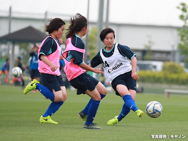 キヤノンガールズ・キャンプも残り1日となりました。雨により午前はピッチでサッカーはできませんでしたが、その分、私達がまず目指すU-17日本女子代表の戦術を知り、世界の選手のレベルを知ることで、午後からのトレーニングで意識しながらプレーすることができました。テーマは「ポゼッション」で、ゴールに向かうことに対して、どう準備すればいいのか、そして体の向きやファーストタッチを工夫することで、よりゴールに近くいけることなど自得しました。この3日間に与えられたテーマと新しいテーマ、両方意識しながらプレーするのは、とても難しかったですが、その中でレベルが高いトレーニングができて、とても良い経験になりました。(今後も)考えながらプレーすることを意識していき、身につけていきたいです。オフの場面では、「エリートキャンプ」のエンブレムをつけていることに対して、「自覚」と「責任」を持たないといけないということを、改めて実感しました。誤りはこれからしっかりと修正して、明日は悔いのないゲームをしてエリートキャンプをやりとげたいです。