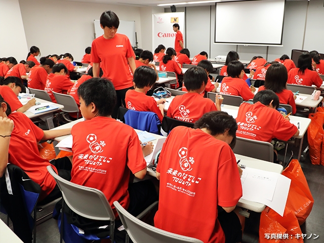 JFAエリートプログラムU-13の立ち上げとなる1回目のトレーニングキャンプにキヤノンさんのご支援をいただき「キヤノンガールズ・キャンプU-13」と銘打って開催することになって5年目を迎えました。今年は例年以上のサポートをいただき、とても恵まれた環境でプログラムを実施することができました。私は、1年目の2014年にも担当をさせていただきましたが、この4年の間で選手のレベルが著しく高くなっていることを実感しました。