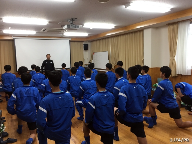 最初のミーティングで西川ナショナルトレセンコーチからこのキャンプの目的が伝えられました。加えて、自分の良さを自覚し、ミスを恐れずにトライすることが強調されました。選手たちは最初緊張した様子でしたがトレーニングが始まると徐々にハードに戦う場面が増えていきました。どの選手もそれぞれ良い特徴があり、可能性を感じさせるプレーが随所に見られました。自立を促し、タイミングを見て教え、具体的にジャッジすることで選手が少しずつ変化していくことがわかり、改めて指導者として大事なことを確認することができました。この場にいることで、指導することの本質を体感できることが何よりの学びになります。選手とともに良い4日間を過ごし成長したいと強く感じることができました。